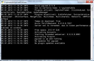 Terminata questa fase possiamo avviare il programma eseguendo il file pyLoadCore.exe. Si aprirà anche in questo caso un prompt, che non deve essere chiuso. La chiusura comporterà lo spegnimento del programma. Nel caso comparisse un warning dal firewall di Windows bisogna necessariamente consentire il processo.